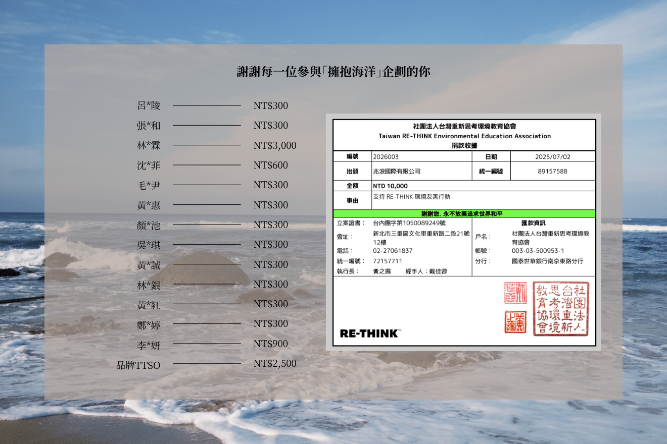 支持他們長期投入的海洋保育與環境教育行動。